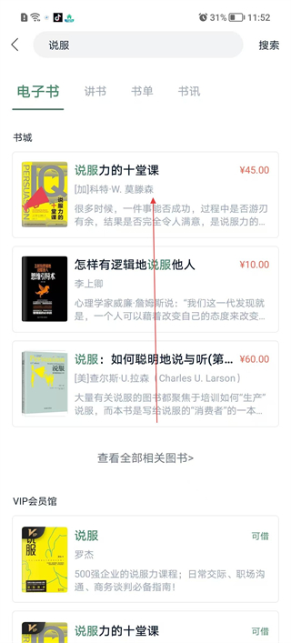 3、在搜索結果中選擇說服力的十堂課這本書,點擊進入該書的詳情頁面,了解其價格及內容介紹。