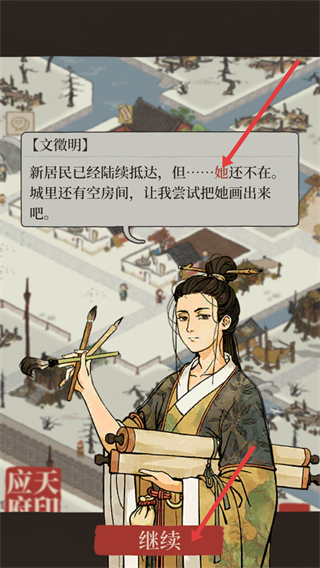 1、新居民抵達后,若缺少特定人物,可嘗試把她畫出來,點擊繼續,開展繪畫相關操作,獲取新角色。