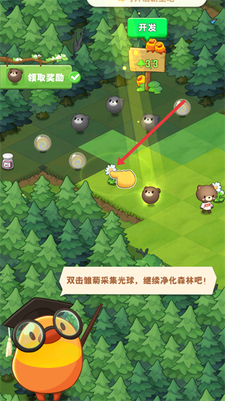 4、雙擊雛菊可采集光球,繼續凈化森林,還可領取獎勵,不斷凈化森林來解鎖更多游戲內容。