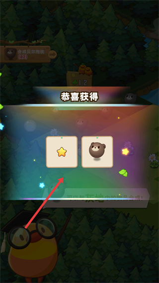 2、會有恭喜獲得的界面,可得到星星、小熊等獎勵,這些獎勵能助力后續的合成與探索。