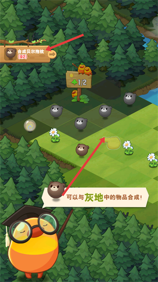 3、會提示可以與灰地里的物品合成,同時有合成任務如合成貝爾棕熊,按照提示合成,推進游戲進程。