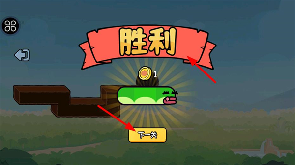 2、通關后會出現勝利界面,獲取對應的金幣獎勵,點擊下一關按鈕,進入后續關卡繼續游戲進程。