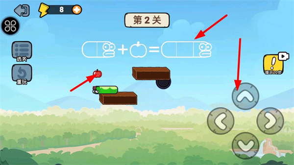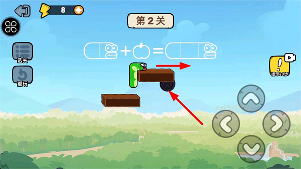 4、繼續操控小蛇移動,借助場景內的平臺和物品,完成對應的操作,向著關卡通關條件推進。