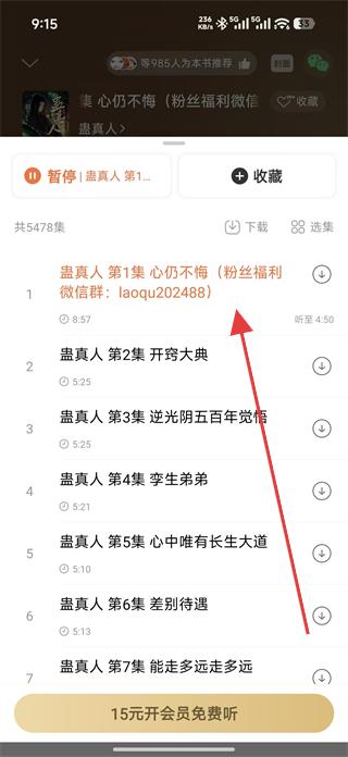 4、在音頻集數頁面,瀏覽蠱真人等作品的集數列表,選擇具體集數,進入該集的播放頁面,繼續收聽音頻。