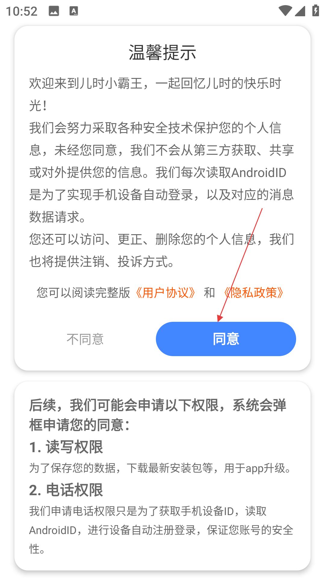 1、使用前需閱讀用戶協議和隱私政策,了解信息保護規則,同意后進入游戲集,選擇懷舊游戲。