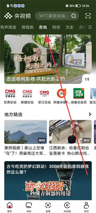4、點擊各地頻道查看走進梧桐影巷等地方內容,瀏覽地方精選板塊的果然視頻、古今吃貨的夢幻聯動等內容,了解各地特色資訊拓寬視野。