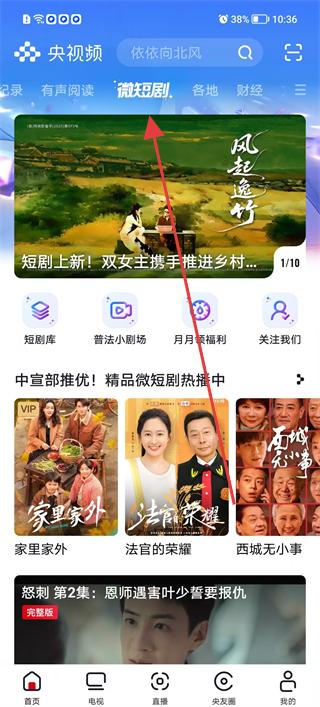 3、進入微短劇頻道,查看短劇上新等微短劇內容,瀏覽短劇庫、普法小劇場等板塊,選擇家里家外、法官的榮耀等微短劇,體驗精彩劇情。
