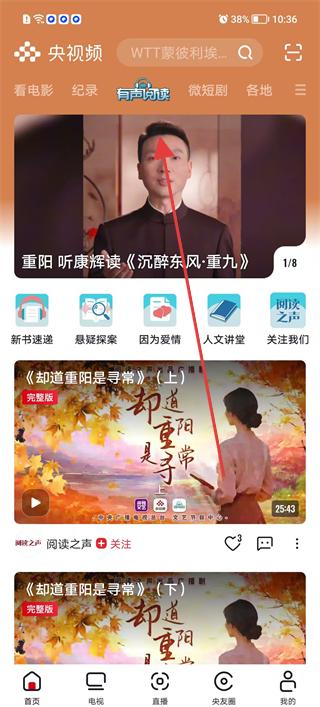 2、切換到有聲閱讀頻道,查看重陽聽康輝讀沉醉東風重九等內容,瀏覽新書速遞、懸疑探案等分類,挑選感興趣的有聲閱讀作品,享受聽覺盛宴。
