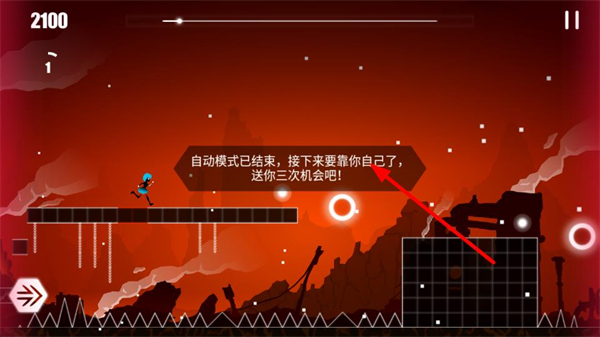 2、自動模式結束后需自主操控角色跑酷,系統會贈送三次機會,利用機會繼續跑酷,爭取更高得分。