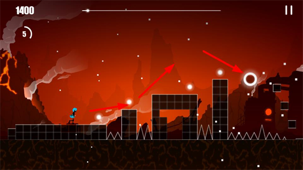 1、跑酷時收集發光圓環道具,這些道具可提升分數,助力完成跑酷關卡,解鎖新的游戲場景和音樂。