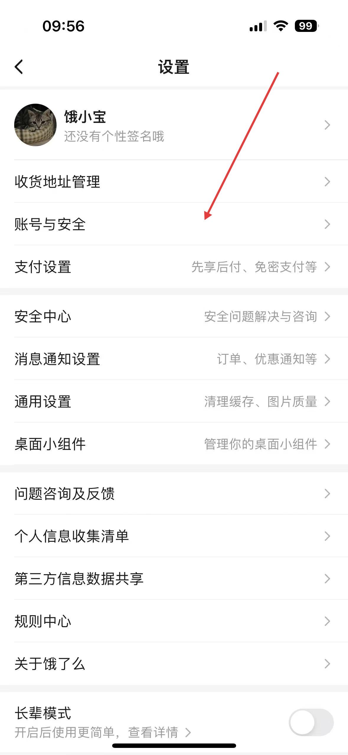1、設置頁面,能管理收貨地址、賬號安全等,還有支付、消息通知等設置項,可個性化配置,點擊賬號與安全。