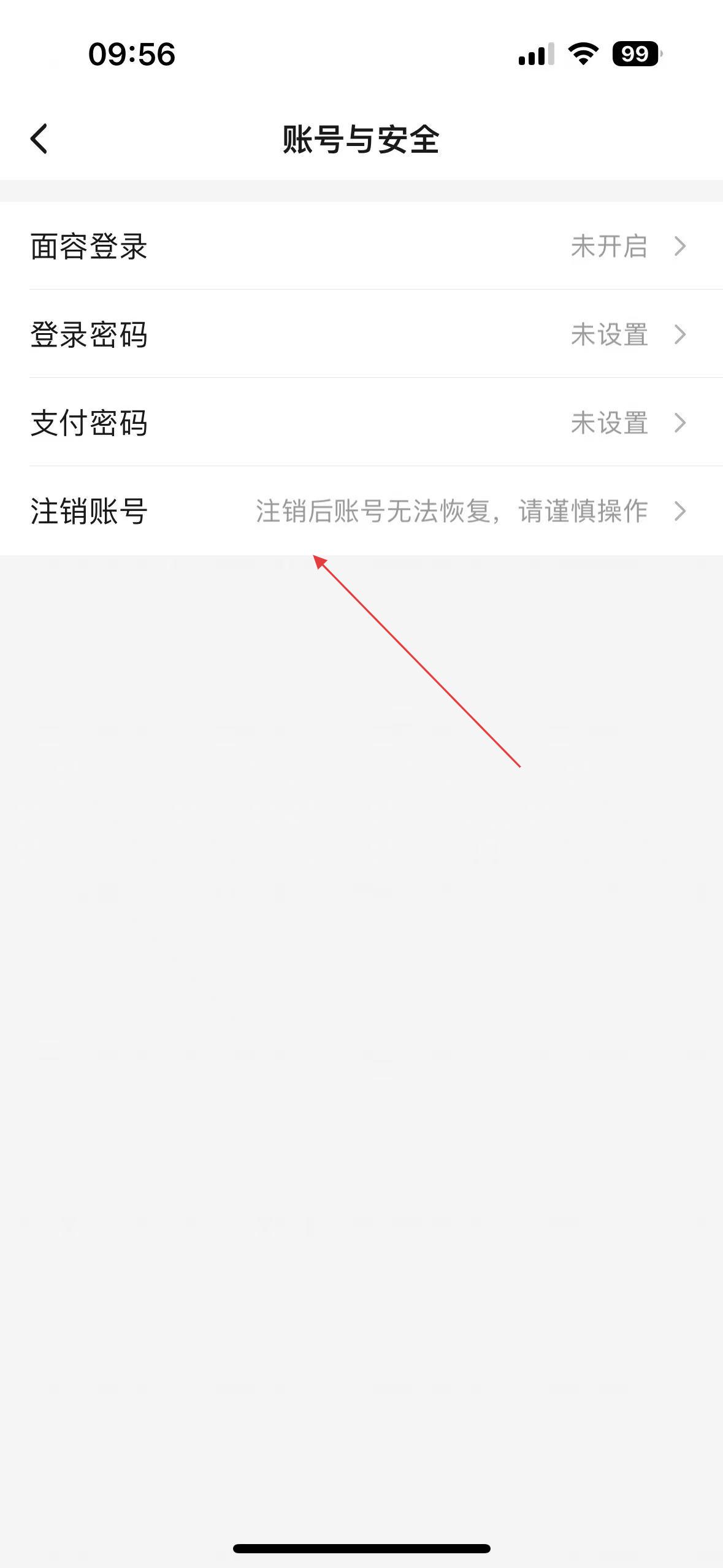 2、賬號與安全頁面,可設置面容、登錄、支付密碼,也能操作注銷賬號,注銷后不可恢復。