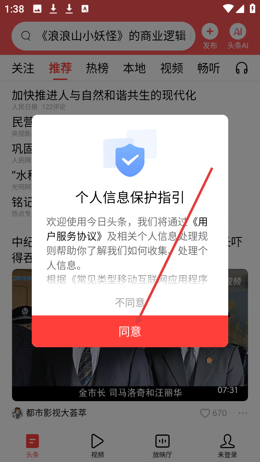 1、打開APP若彈出個人信息保護指引彈窗,仔細閱讀用戶服務協議及相關規則后點擊同意,這是使用APP服務、進行登錄的前置步驟,確認后才可進入后續流程。