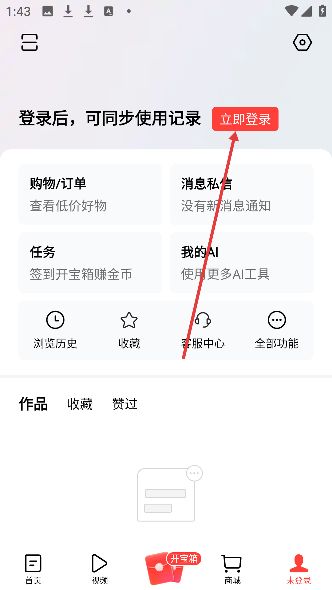2、進入APP未登錄頁面,上方有立即登錄按鈕,點擊該按鈕可開啟登錄流程,登錄后能同步使用記錄、參與任務等,是使用個性化服務與功能的關鍵操作。
