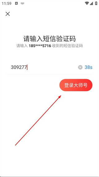 2、在短信驗證頁面輸入收到的驗證碼,點擊登錄大師號,完成賬號登錄,獲取郵箱管理權限。