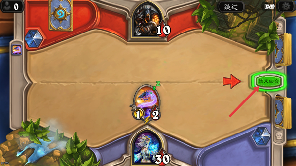 2、隨從牌使用后,若本回合操作完畢,點擊結束回合,結束自己的回合,輪到對手進行操作。