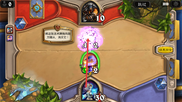 4、當敵方有隨從時,將法術牌拖向敵方隨從,使用法術牌消滅它,清除敵方戰力,推進對戰進程。