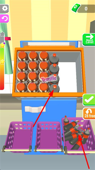 冰箱陳列師最新版這是一個超級有趣和休閑的減壓游戲,玩家需要清空所有類型的購物車,你必須分類,你也可以填滿冰箱的貨架上不同的雜貨,物品,飲料。