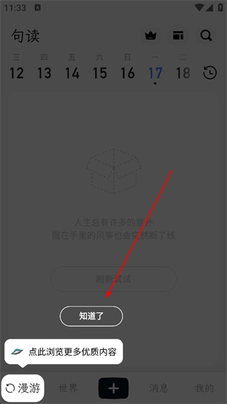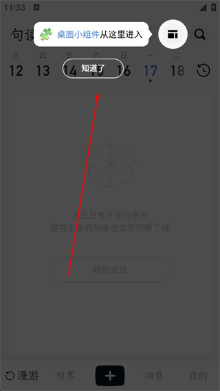 1、打開句讀軟件,看到桌面小組件從這里進入的提示,點擊知道了關閉該提示。