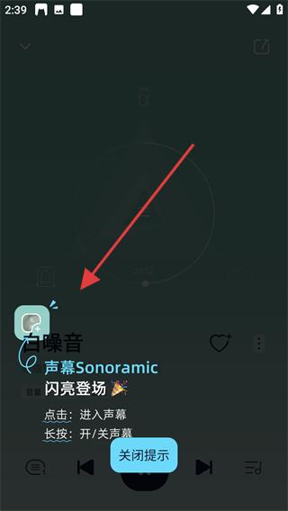 3、在白噪音播放頁面可看到聲幕Sonoramic的提示,點擊進入聲幕可設置聲幕功能,調整白噪音的播放效果。