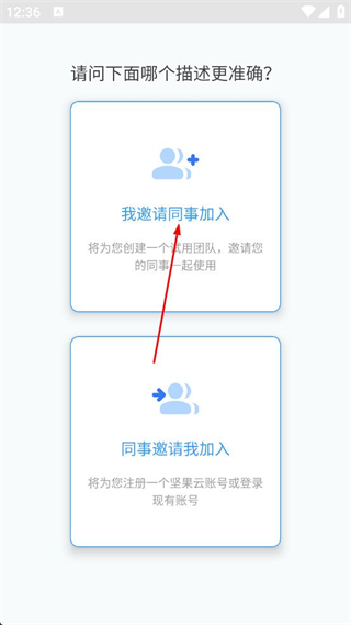 2、在團隊使用選擇頁面選擇我邀請同事加入,將創建一個團隊,可邀請同事一起使用云存儲服務。