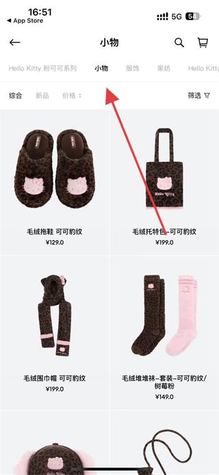 2、點擊小物分類挑毛絨拖鞋、托特包等,豐富選擇。
