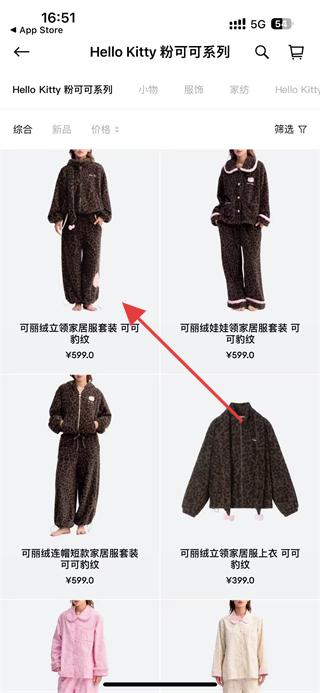 1、瀏覽HelloKitty粉可可系列家居服,選心儀款式,開啟選購。