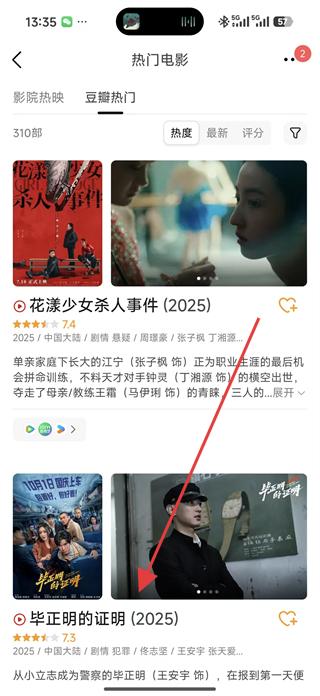 2、在熱門電影列表頁面,選擇感興趣的電影,如畢正明的證明,進入電影詳情頁面,查看電影的評分、簡介等信息。