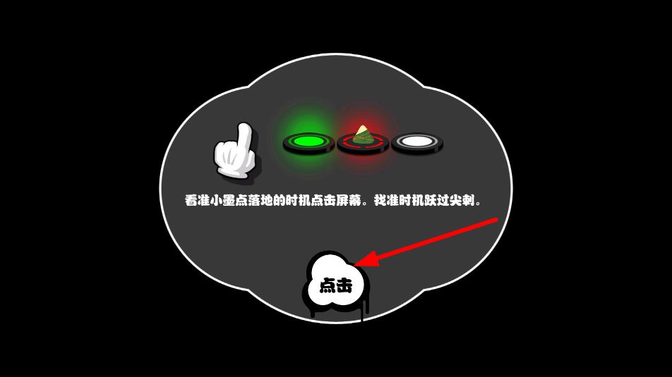 1、看準小墨點落地時機點擊屏幕,找準時機躍過尖刺,開啟帶障礙的節奏挑戰,提升操作精準度。