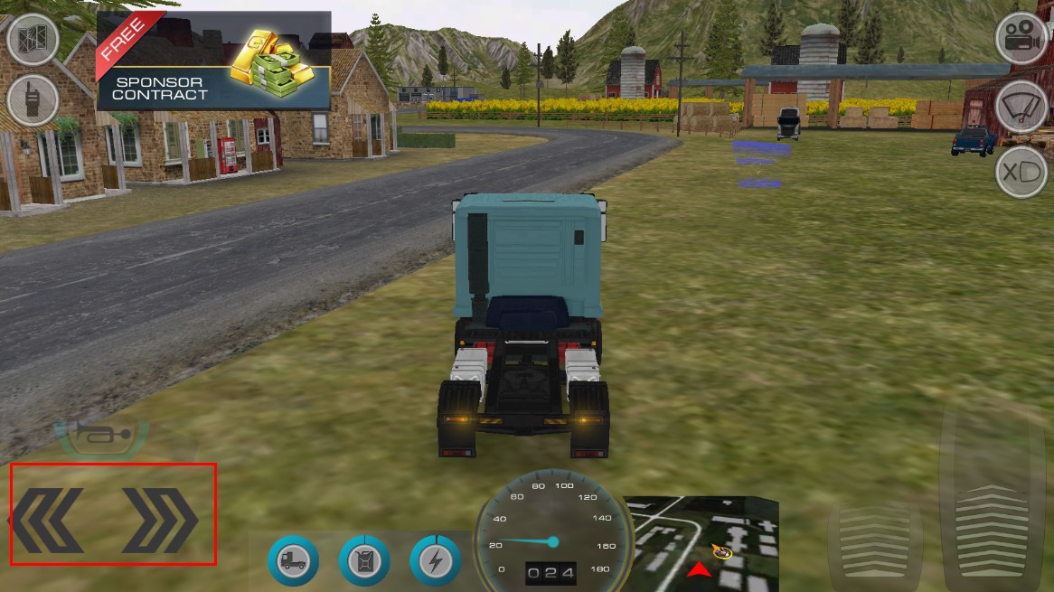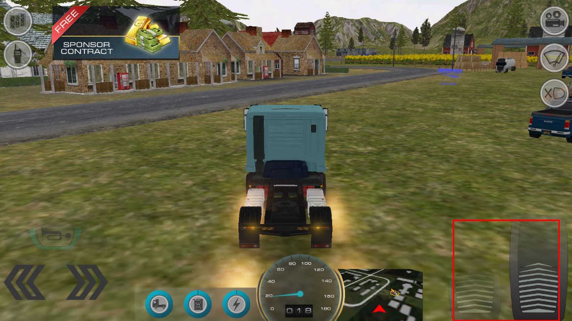 2、在野外場景駕駛時,可通過點擊右側油門踏板,控制卡車加速,讓卡車在草地等地形上行駛,提升行駛速度。