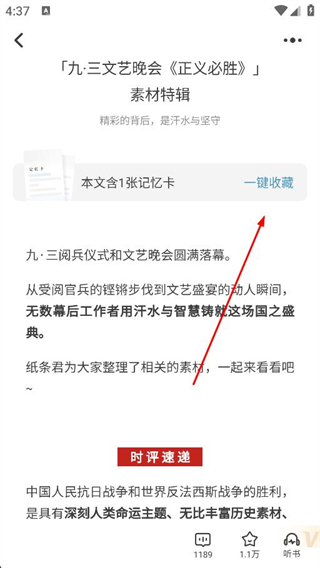 4、在素材特輯詳情頁可查看素材的詳細內容,了解背后的故事,點擊一鍵收藏,方便后續使用該素材進行作文創作。