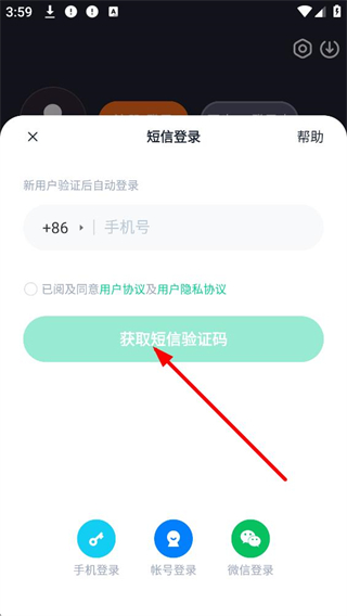 3、登錄界面,可選擇短信登錄,輸入手機號獲取驗證碼,也可選擇手機登錄、帳號登錄或微信登錄,完成賬號登錄。