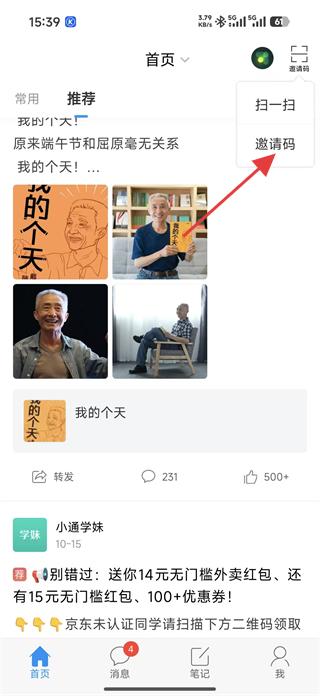 2、在首頁選項,點擊邀請碼選項,就可以通過邀請碼加入老師的課程。