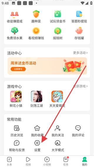 1、打開趣頭條app,進入我的頁面,點擊設置,登錄自己的賬號使用。