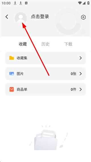 2、個人界面,能看到點擊登錄入口,還有收藏、歷史、下載等功能選項,點擊點擊登錄進入登錄界面。