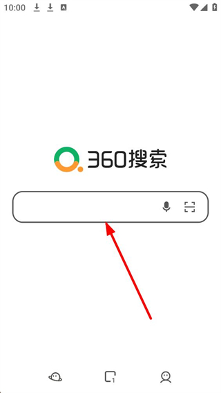 1、打開360搜索APP,進入首頁,可看到360搜索標識和搜索框,點擊底部個人相關按鈕進入個人界面。