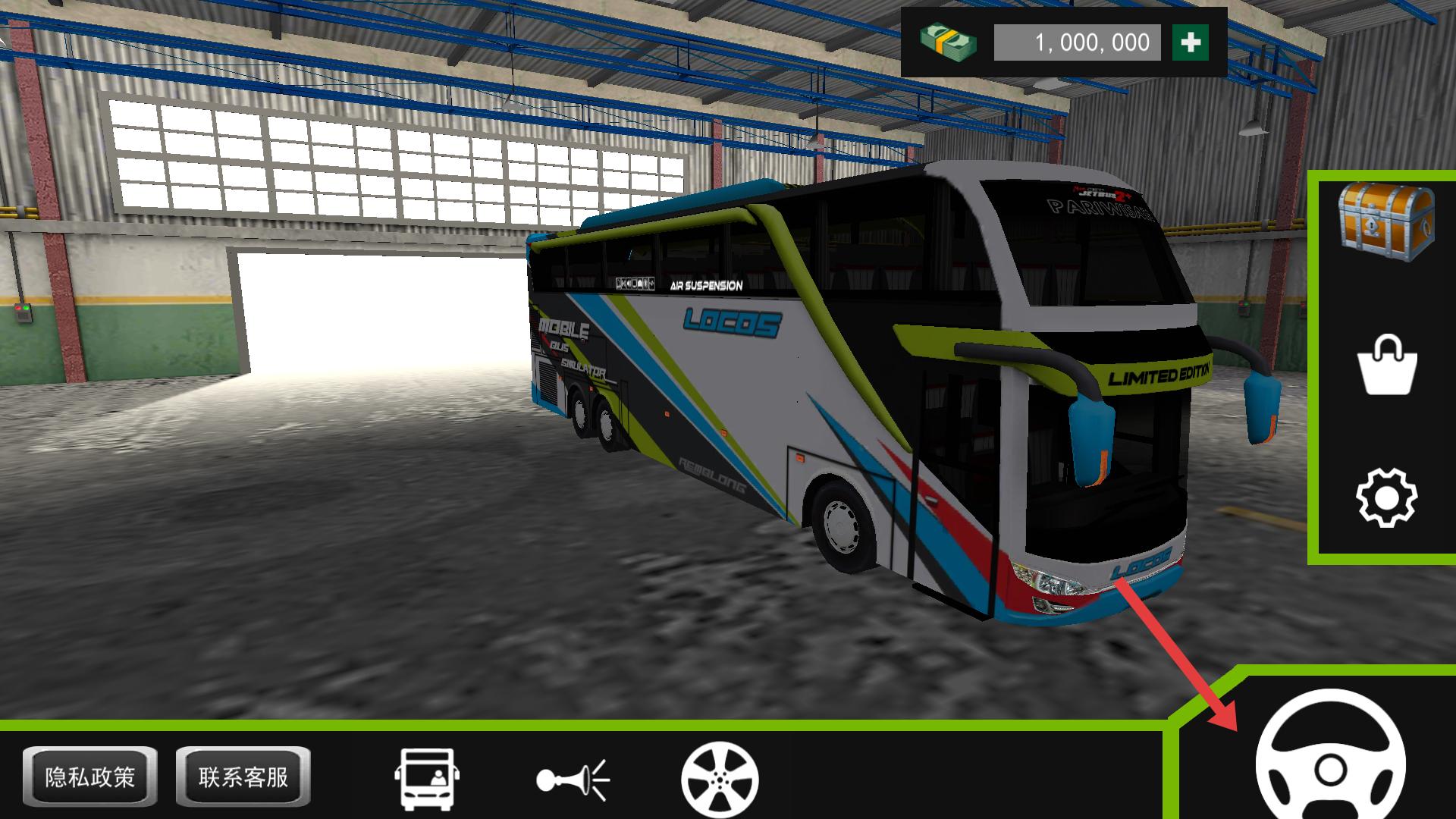 1、游戲初始界面有大巴車和方向盤按鈕,點擊方向盤按鈕,可進入駕駛模式,開啟大巴車駕駛之旅。