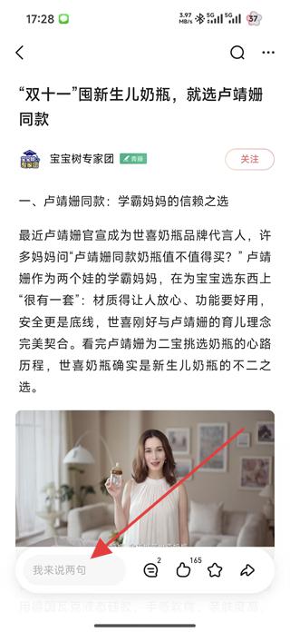 4、在帖子詳情頁閱讀帖子內容,若有想法,點擊我來說兩句,輸入自己的看法,與其他用戶交流互動。