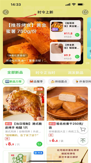 2、時令上新板塊,推黃金蜜薯等烤食,還有港式烤手槍腿、攸香干等新品,分三類滿足秋季嘗鮮需求。