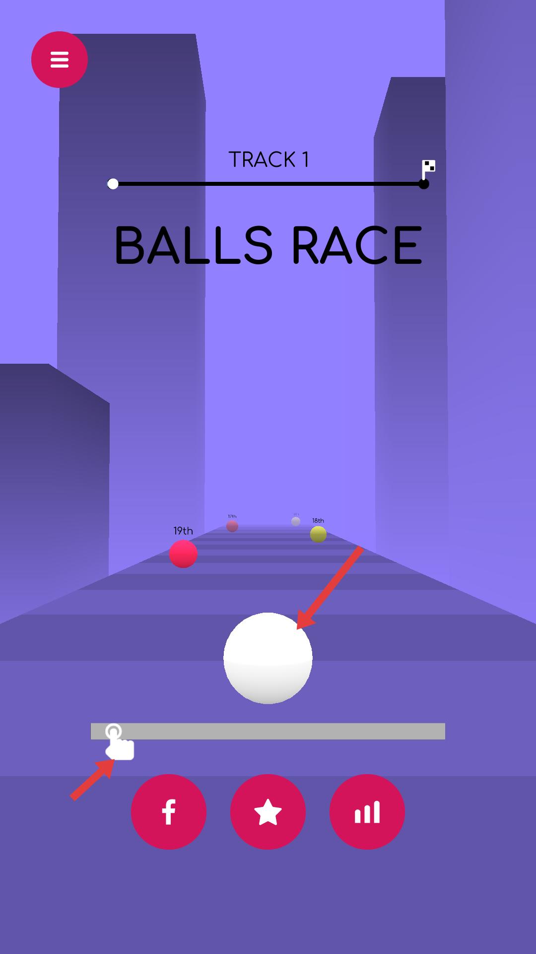 1、游戲初始界面,操控白色小球,利用下方操作區域,讓小球在賽道上前進,開始參與比賽。