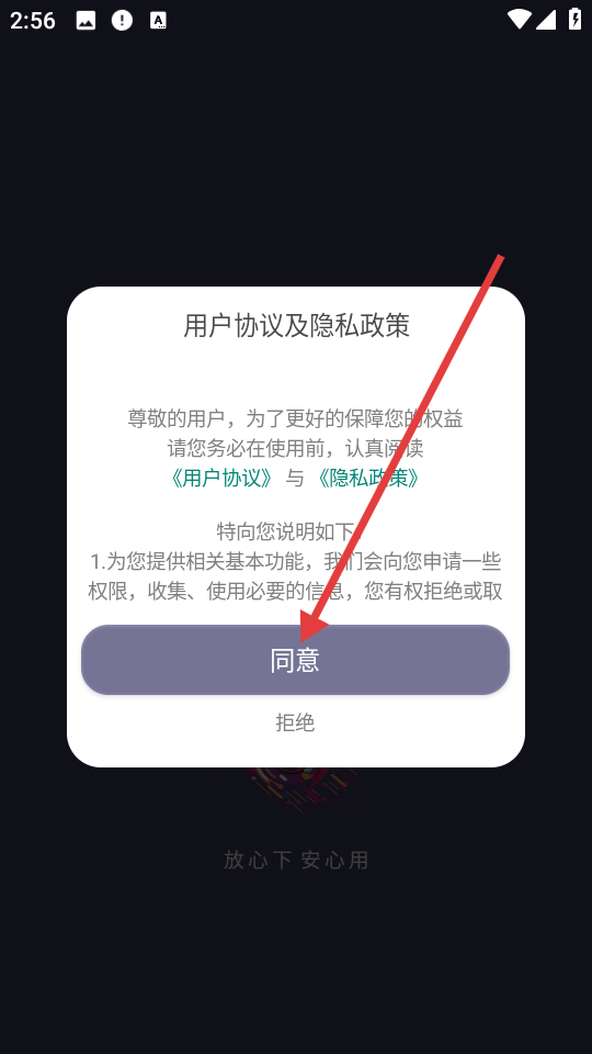 1、首次打開APP會彈出用戶協議及隱私政策界面,需仔細閱讀后點擊同意才能繼續使用APP,這一步是為了確保用戶了解并同意平臺使用個人信息的規則。