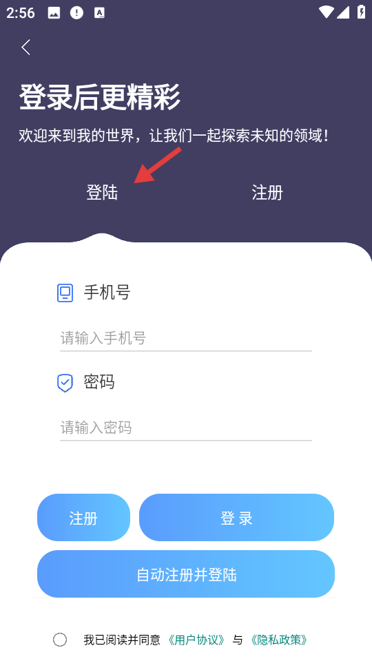 2、進入APP的登錄界面在對應輸入框中準確錄入您的手機號碼,仔細填入設置好的密碼,確認信息無誤后點擊登錄按鈕即可開啟APP的使用之旅。