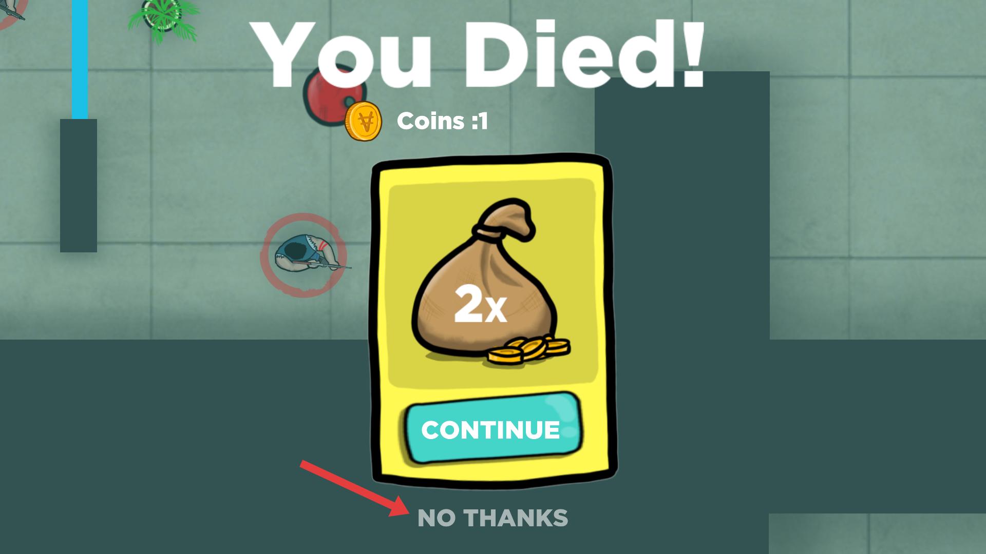 4、若角色死亡,會顯示You Died界面,可選擇CONTINUE繼續或NO THANKS放棄,根據情況選擇,重新挑戰關卡。