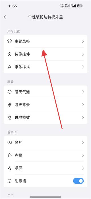 2、在個性裝扮與特權外顯設置頁面,找到主題風格選項,點擊進入主題風格選擇頁面,可看到各類主題裝扮。