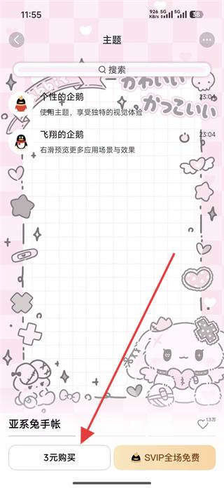 4、在主題詳情頁面可查看主題的預覽效果,若要使用該主題,可根據提示選擇3元購買或者開通SVIP全場免費用完成主題設置。