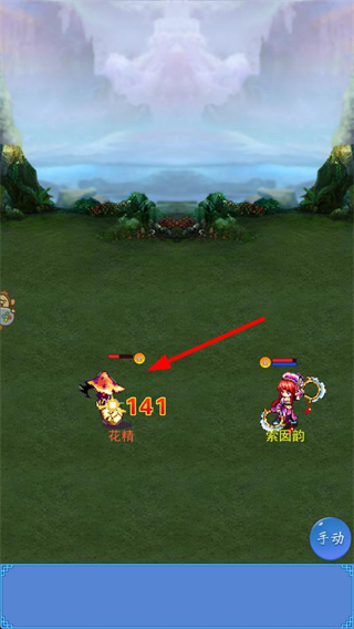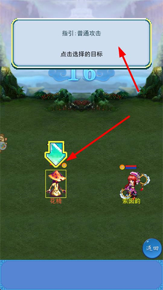 3、選擇普通攻擊目標如花精,點擊目標發起攻擊,通過普通攻擊積累傷害,擊敗怪物獲取經驗。