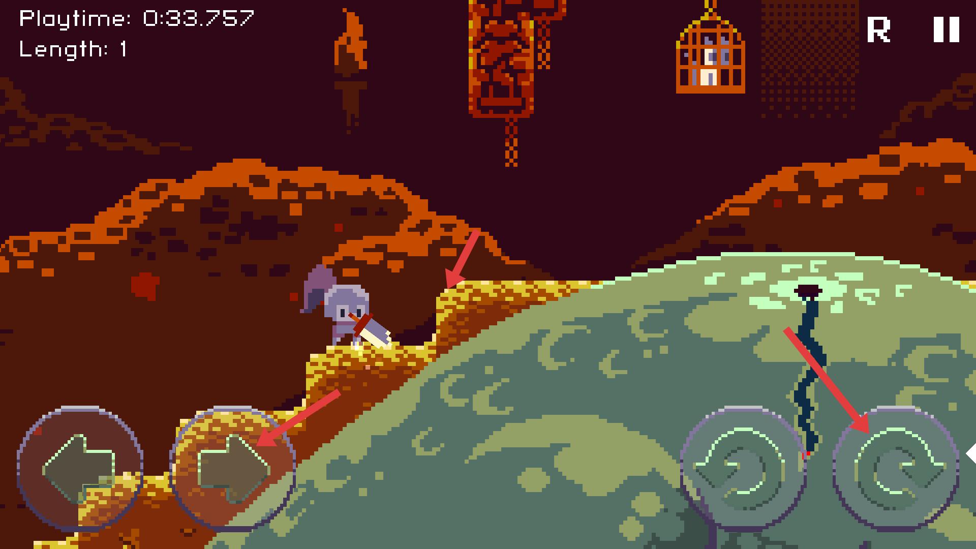 3、來到有金色地形和牢籠的場景,利用左右方向鍵操控角色移動,同時可借助相關功能按鈕,探索場景,尋找前進路徑或解救被困目標。