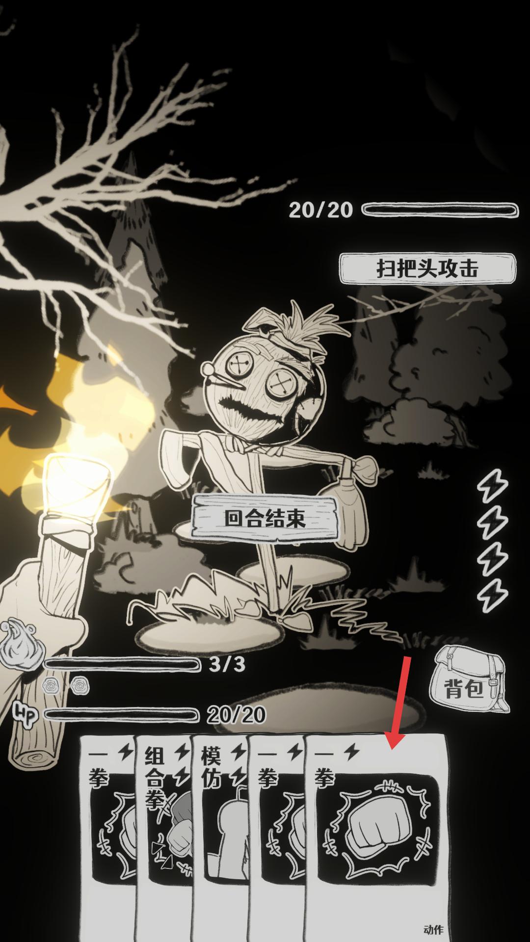 3、戰斗過程中,下方會出現多種技能卡牌,如一拳、組合拳等,選擇合適的技能卡牌點擊使用,可對敵人造成傷害,推進戰斗進程。
