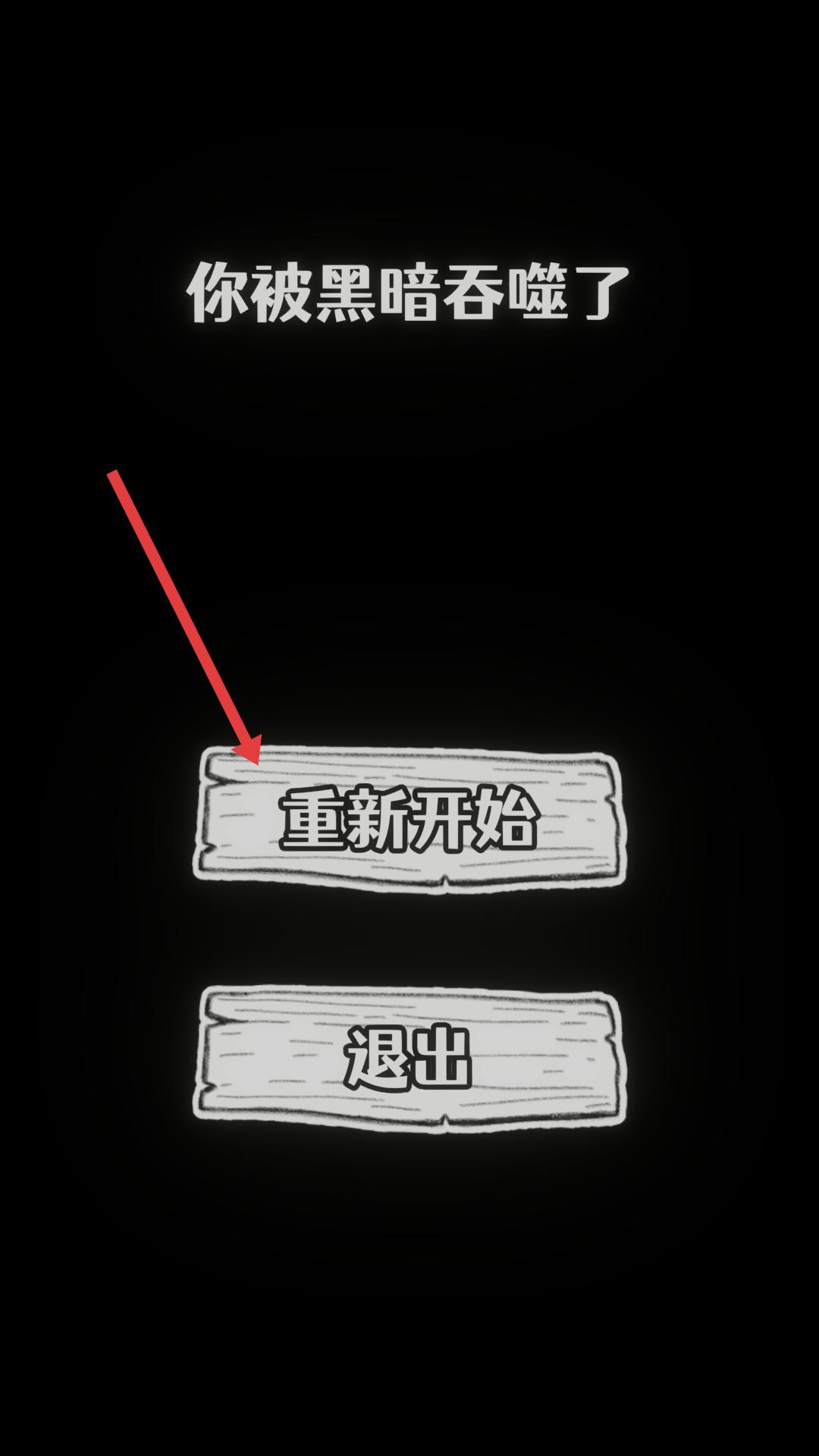 4、若戰斗失敗,界面會顯示你被黑暗吞噬了,此時點擊【重新開始】,就能再次挑戰,繼續在游戲中冒險。
