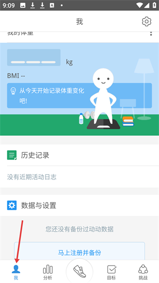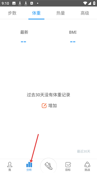 2、分析模塊涵蓋步數、體重、熱量等維度,可查看體重和BMI變化,方便用戶清晰掌握身體指標趨勢。